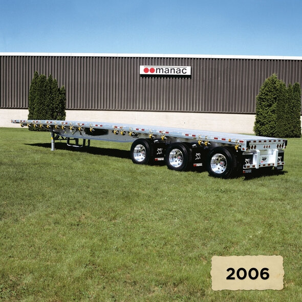 La première année, l'équipe fabrique 11 remorques, marquant le début d'une histoire qui façonnera l'industrie du transport au Canada et en Amérique du Nord. Au fil des décennies, Manac se développe, innove et diversifie son offre, guidée par une intention claire : offrir des solutions personnalisées et durables aux transporteurs, tout en demeurant alignée sur les besoins réels du marché. Cette mission, toujours au cœur de l'entreprise, a permis à Manac de devenir aujourd'hui le plus important fabricant de semi‑remorques spécialisées au Canada, et un acteur majeur en Amérique du Nord.
